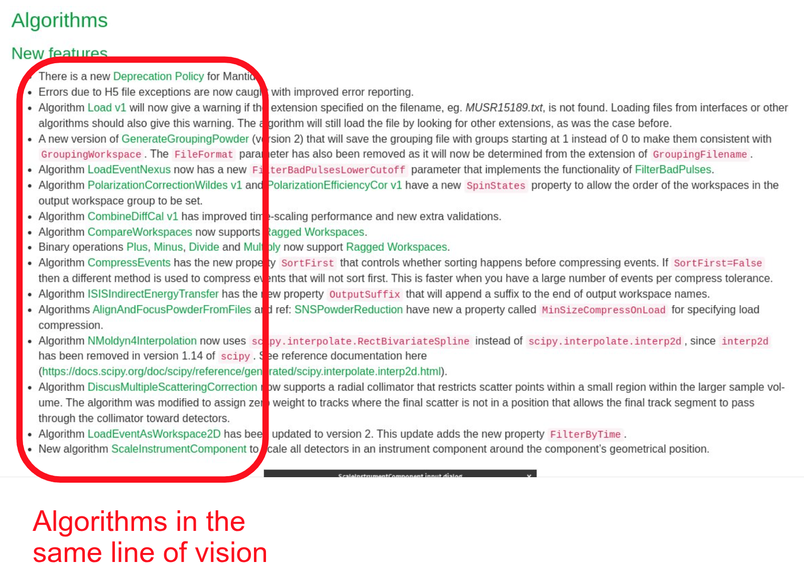 The main advantage of this model is that in the final version of the release notes, all algorithms and interfaces get positioned in the same line of vision. This is important because it makes skimming the release notes much easier for our busy users: